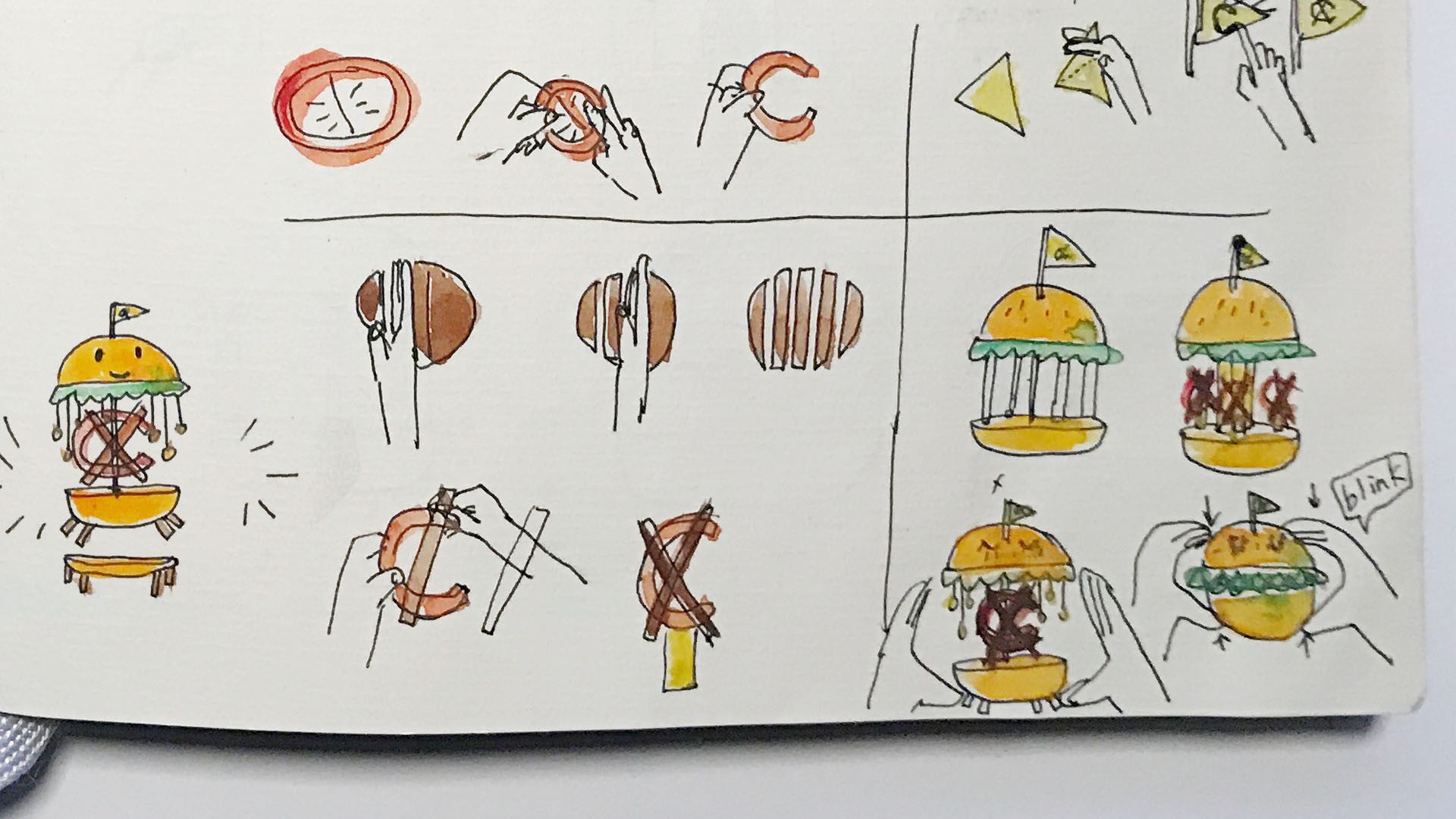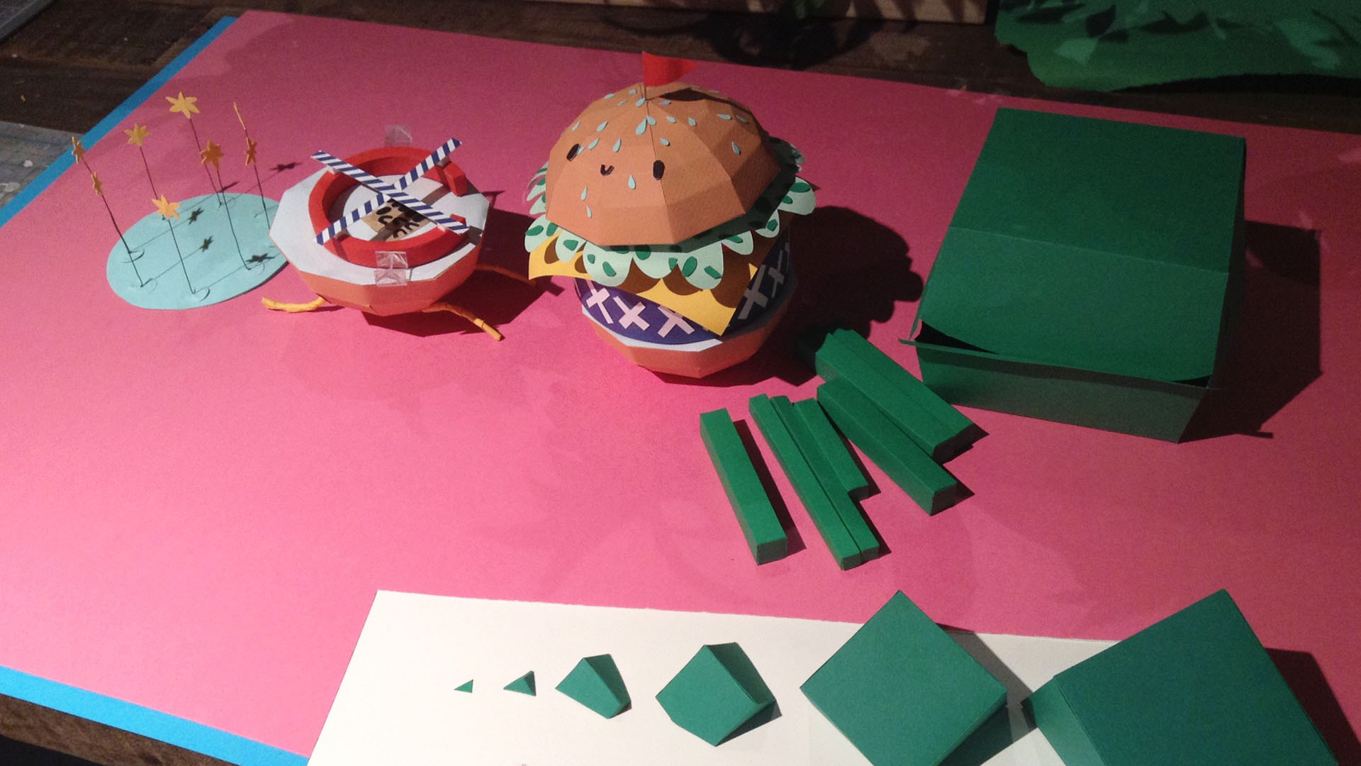 Paper burger bouncing over a fun game theme audio for CX logo animation.